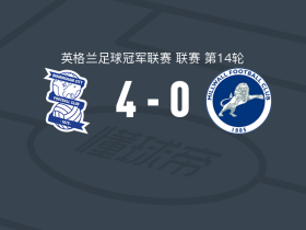 伯明翰4-0大胜米尔沃尔,斯坦斯菲尔德建功,科克伦破门