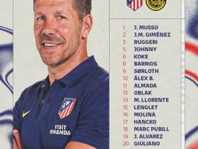 马竞战博德闪耀大名单:格列兹曼缺阵,小蜘蛛、瑟洛特在列