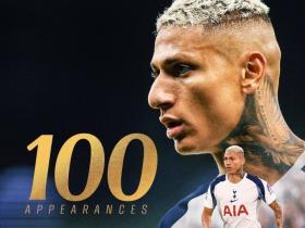 首发登场对阵博德闪耀,里沙利松迎来代表热刺的第100场比赛