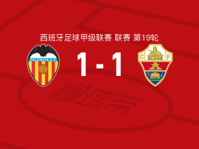 瓦伦西亚1-1埃尔切,迪安加纳破门,佩佩卢扳平
