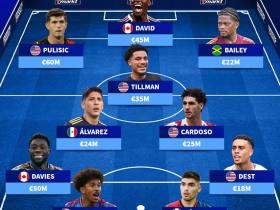 德转列中北美足联球员最贵阵容:普利希奇、阿方索领衔