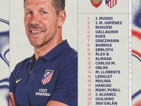 马竞欧冠大名单:格列兹曼领衔,小蜘蛛在列,瑟洛特缺席