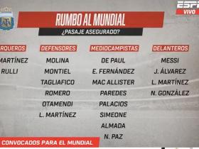 ESPN:阿根廷已有20人进入世界杯名单,16人争夺剩余6个名额
