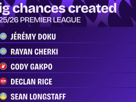 赛季至今英超创造绝佳机会榜:多库7次第1,加克波、赖斯上榜
