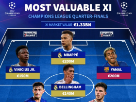 欧冠1/4决赛最贵阵容:姆巴佩、亚马尔领衔,巴萨4人皇马3人