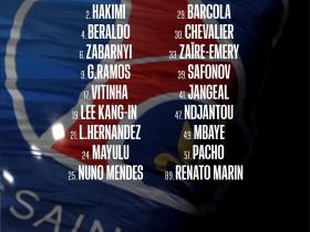 巴黎客战里尔大名单:登贝莱、法比安、若昂-内维斯等人缺席