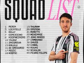 尤文公布战葡体大名单:伊尔迪兹回归,凯利、布雷默缺席