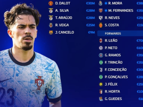 新一期葡萄牙队身价榜:若昂-内维斯、维蒂尼亚1.1亿欧第1