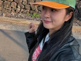 韩国女足国脚崔宥莉在济州岛休假。