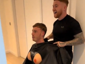 笑不活了,帕尔默理发时被整蛊披上带有“大胸”的披肩