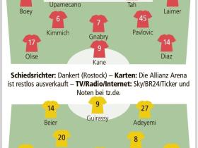 德媒预测德国国家德比首发:凯恩、奥利塞vs吉拉西、阿德耶米