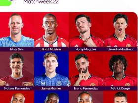希勒评英超第22轮最佳阵:曼联5人在列,埃弗顿、西汉姆各2人