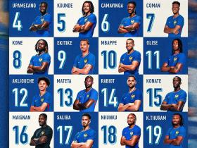 法国队本月号码:姆巴佩10号、埃基蒂克9号、托万20号