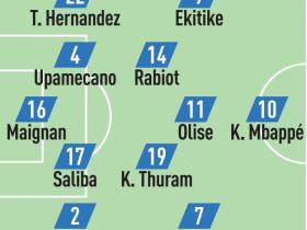 队报预测法国战阿塞拜疆首发:姆巴佩、埃基蒂克、奥利塞在列