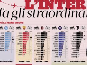 意甲五强球员国际比赛日出场时间:国米12人出场1527分钟最多