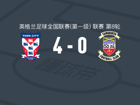 约克城3-0大胜石威德,Ollie Pearce点射破门,Josh Stones建功