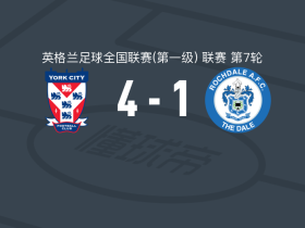 约克城4-1大胜罗奇代尔,Josh Stones双响,Ollie Pearce梅开二度