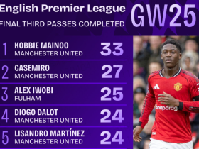 数据出色,梅努vs热刺33次进攻三区成功传球为本轮英超最多