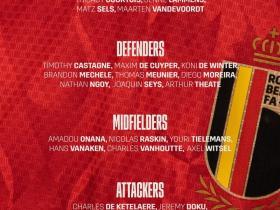 比利时队大名单:德布劳内领衔,拉门斯在列,蒂勒曼斯伤缺