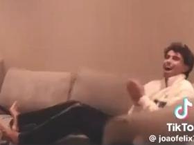 目睹门将特鲁宾进皇马球后,菲利克斯和朋友们在电视前兴奋大叫
