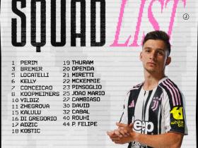 尤文公布战罗马大名单:伊尔迪兹领衔,米利克长期伤缺后回归