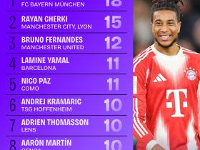 2025年五大联赛助攻榜:奥利塞18次居首,谢尔基15次位列第二