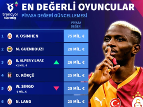 德转更新土超身价前10:奥斯梅恩7500万欧断档第1,萨内第8