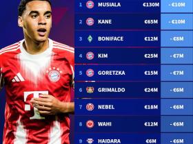 德甲球员身价下跌榜:穆西亚拉、凯恩跌1000万欧并列第一