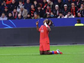 半场战报:十人勒沃库森1-4十人巴黎,杜埃双响,KK传射