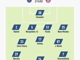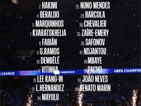 巴黎客战洛里昂大名单:内维斯回归,阿什拉夫、李刚仁缺阵