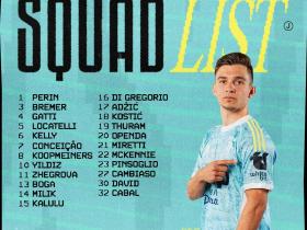 尤文vs加拉塔萨雷大名单:伊尔迪兹领衔,布雷默、卡卢卢回归