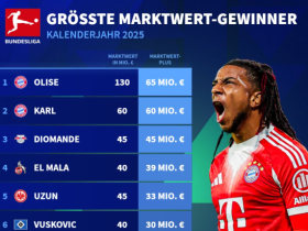 德甲球员2025年身价上涨榜:奥利塞、卡尔前2,迪奥曼德第3