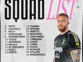 尤文主场战卡利亚里大名单,伊尔迪兹领衔,加蒂回归