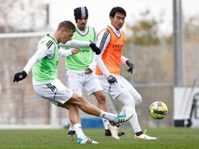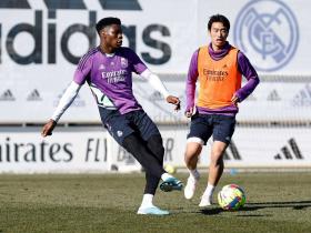 今日,日本球员中井卓大再次加入皇马一线队训练,此...
