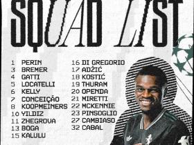 尤文客战国米大名单:伊尔迪兹领衔,凯夫伦-图拉姆缺席