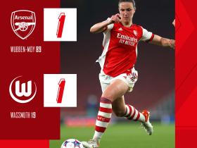 女足欧冠:伍本-摩伊救主,首回合阿森纳1-1沃尔夫斯堡