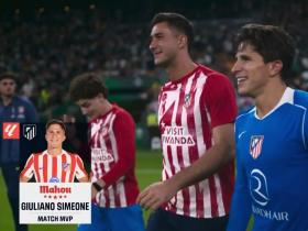 送出助攻,朱利亚诺当选马竞vs塞维利亚全场最佳球员