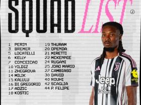 尤文意甲首轮大名单:洛卡特利领衔,乔纳森-戴维、DV9在列