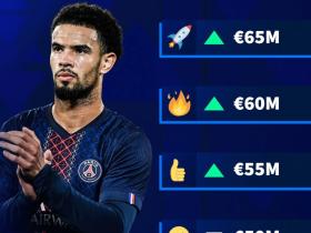 法甲涨幅榜:雅凯涨3500万第1,扎伊尔-埃梅里、恩德里克上榜