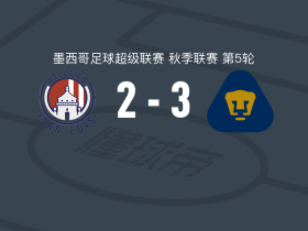 美洲狮2-0克雷塔罗,吉列尔莫-马丁内斯建功,鲁巴尔卡瓦锁定胜局