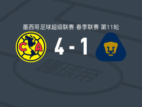 美洲4-1大胜美洲狮,森德哈斯两球,何塞-苏尼加破门