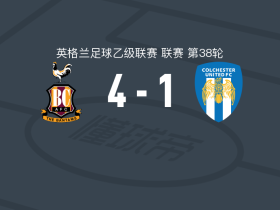 布拉德福德城4-1大胜科尔切斯特联,拉普斯列梅开二度,卡瓦纳两球