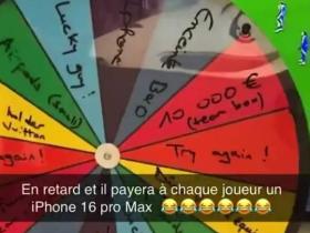 摩纳哥后卫因训练迟到抽惩罚轮盘,抽到给队友买iPhone 16