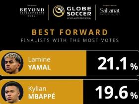 环足奖2025年最佳前锋投票:亚马尔第一,姆巴佩、登贝莱二三
