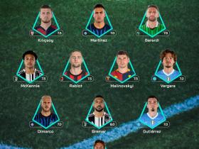 意甲第23轮最佳阵容:劳塔罗、迪马尔科、麦肯尼、拉比奥在列