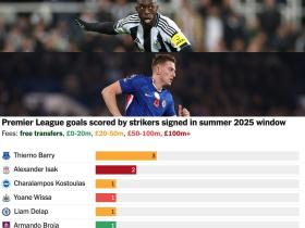 英超俱乐部在去年夏天转会窗口对中锋位置的投入依旧...