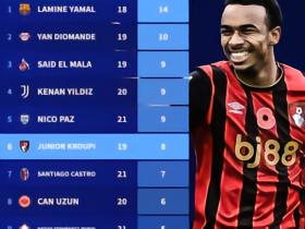 本赛季五大联赛U21进球榜:亚马尔14球第1,迪奥曼德10球第2