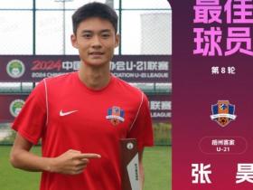 U21联赛官方:梅州前锋张昊当选决赛第二阶段第8轮最佳球员