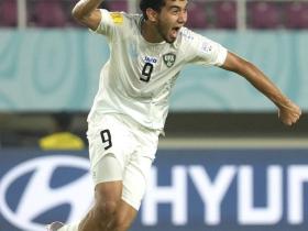 17岁的乌兹别克斯坦前锋阿米尔·赛义多夫在对阵加...