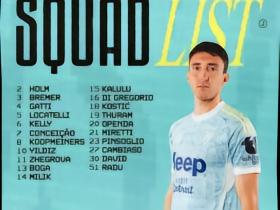 尤文公布客战亚特兰大大名单:伊尔迪兹领衔,DV9、佩林缺阵